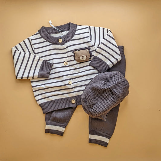 2 Piece Imported Woolen Suit with Cap - Lines/Bear 🐻