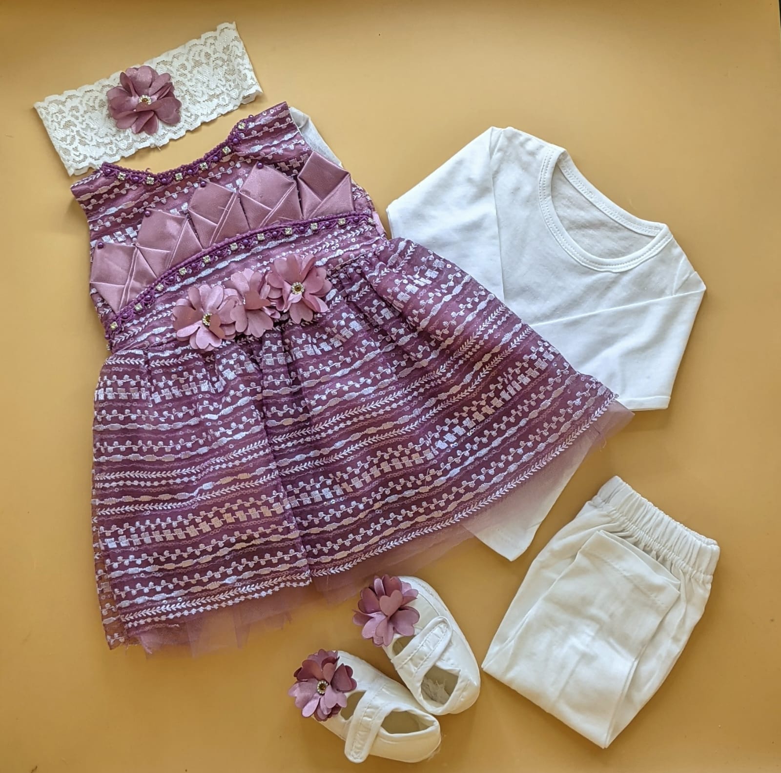 •  This 5-piece Frock set is designed with soft, breathable fabrics, ensuring optimal comfort for infants with sensitive skin.